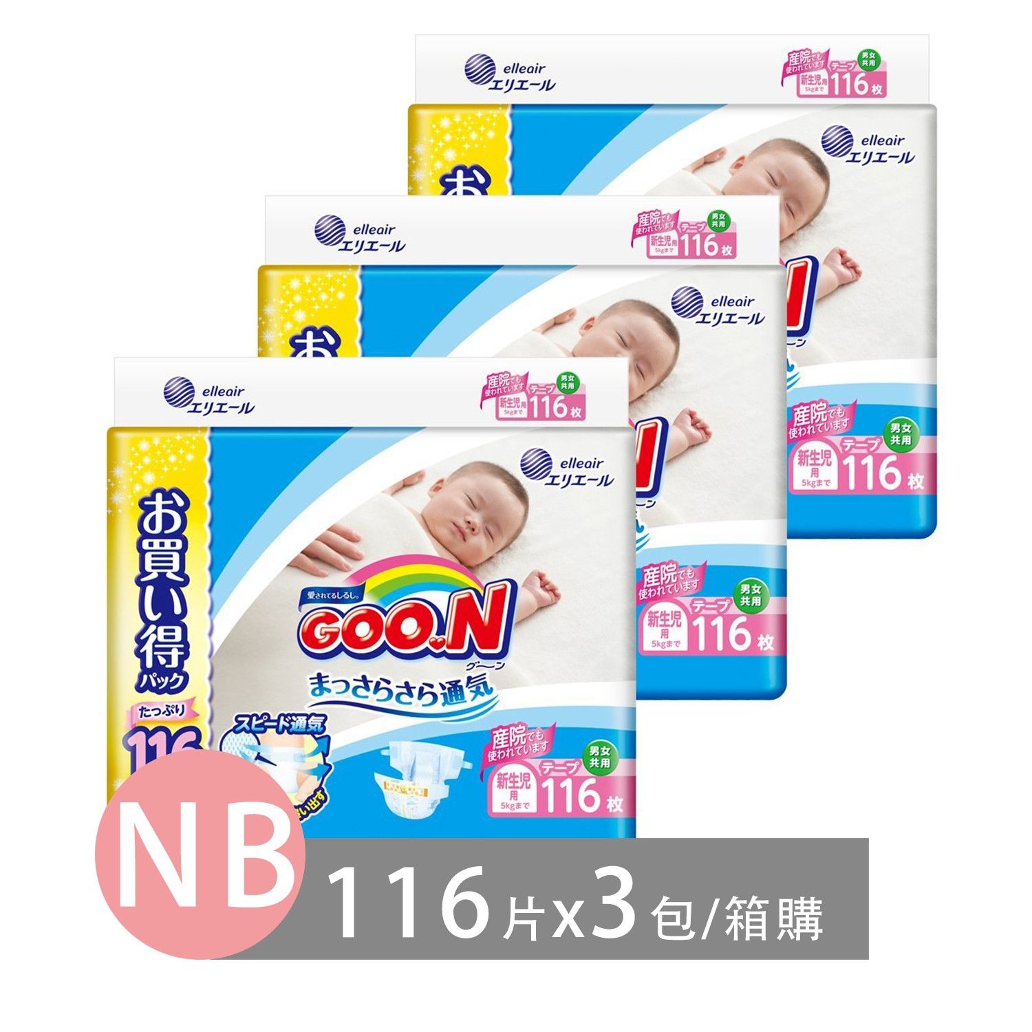 GOO.N 日本境內限定大王尿布-黏貼型 (NB [5kg以下]))-116片x3包/箱