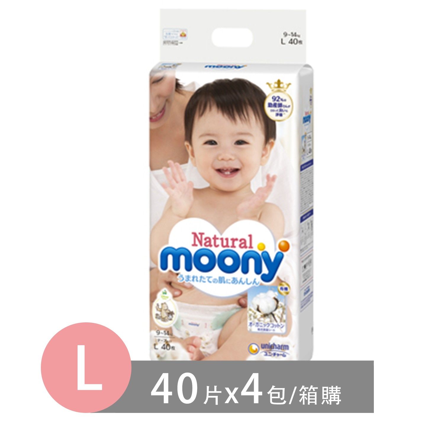 moony 日本境內Natural moony頂級棉花糖尿布-黏貼型 (L [9-14kg])-40片x4包/箱