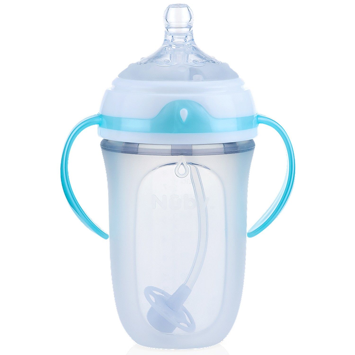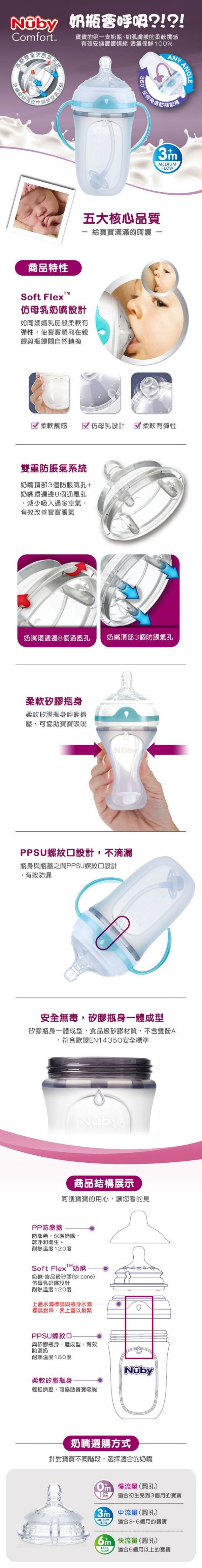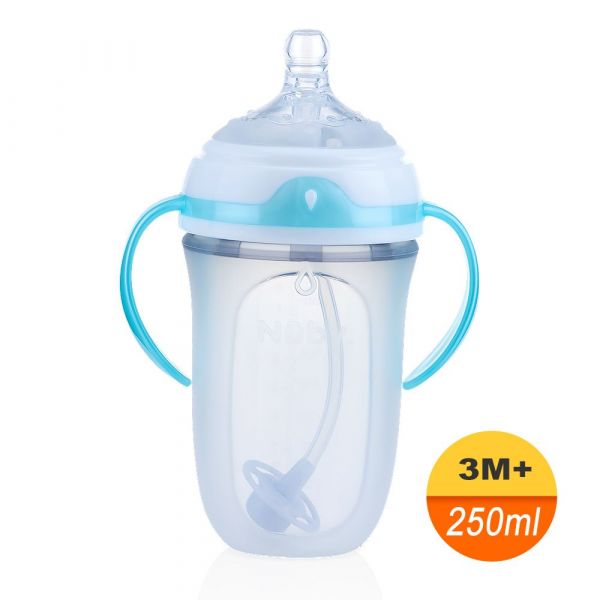 Nuby Comfort寬口徑防脹氣矽膠奶瓶-250ml (360度滾珠吸管)
