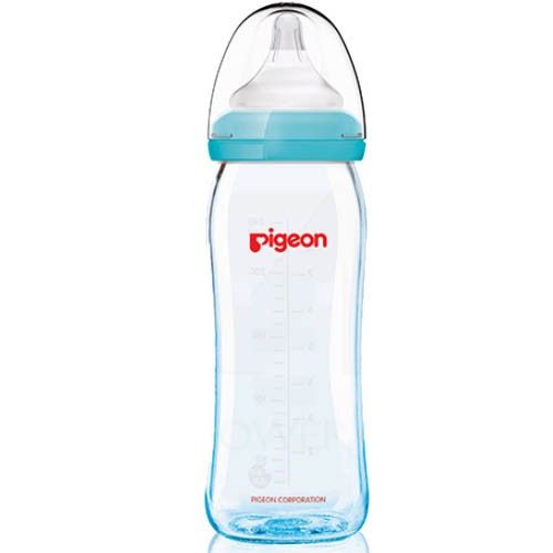 貝親 Pigeon 母乳實感矽膠護層寬口玻璃奶瓶-藍色 (240ml)-L奶嘴