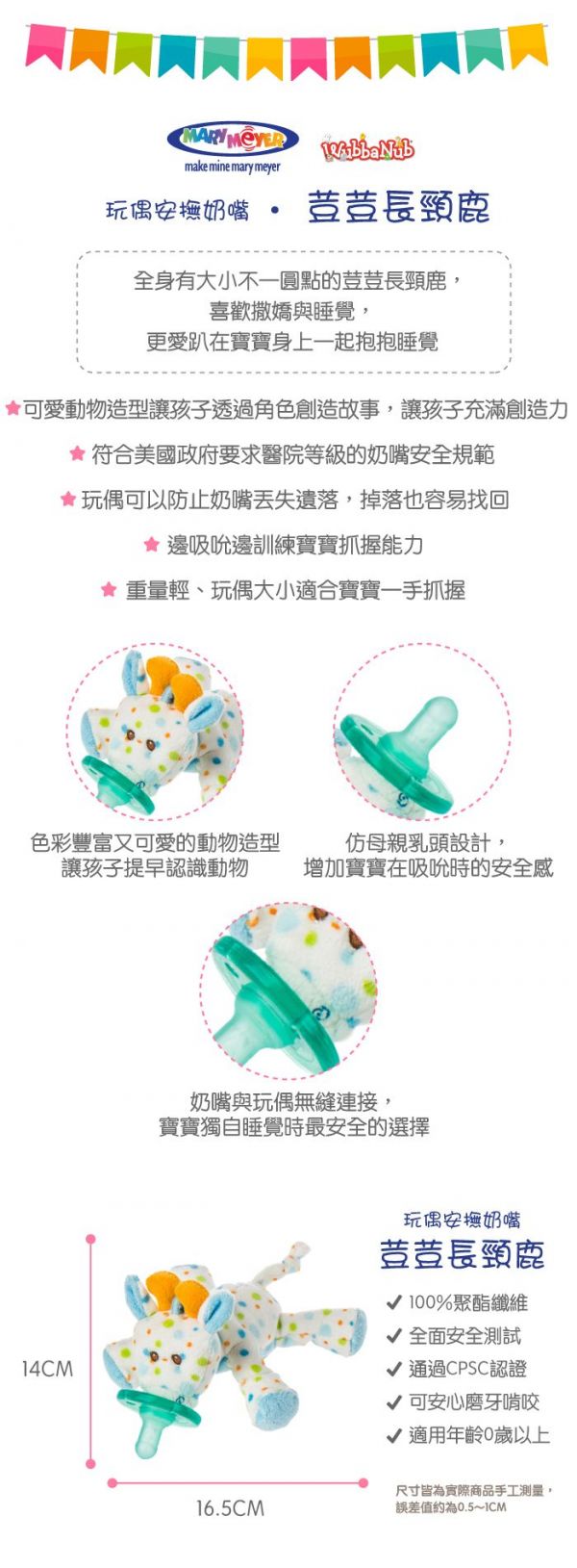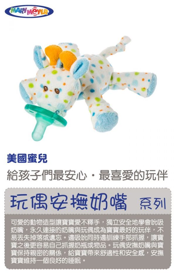 - 毛絨玩偶使寶寶容易掌握和拿取奶嘴