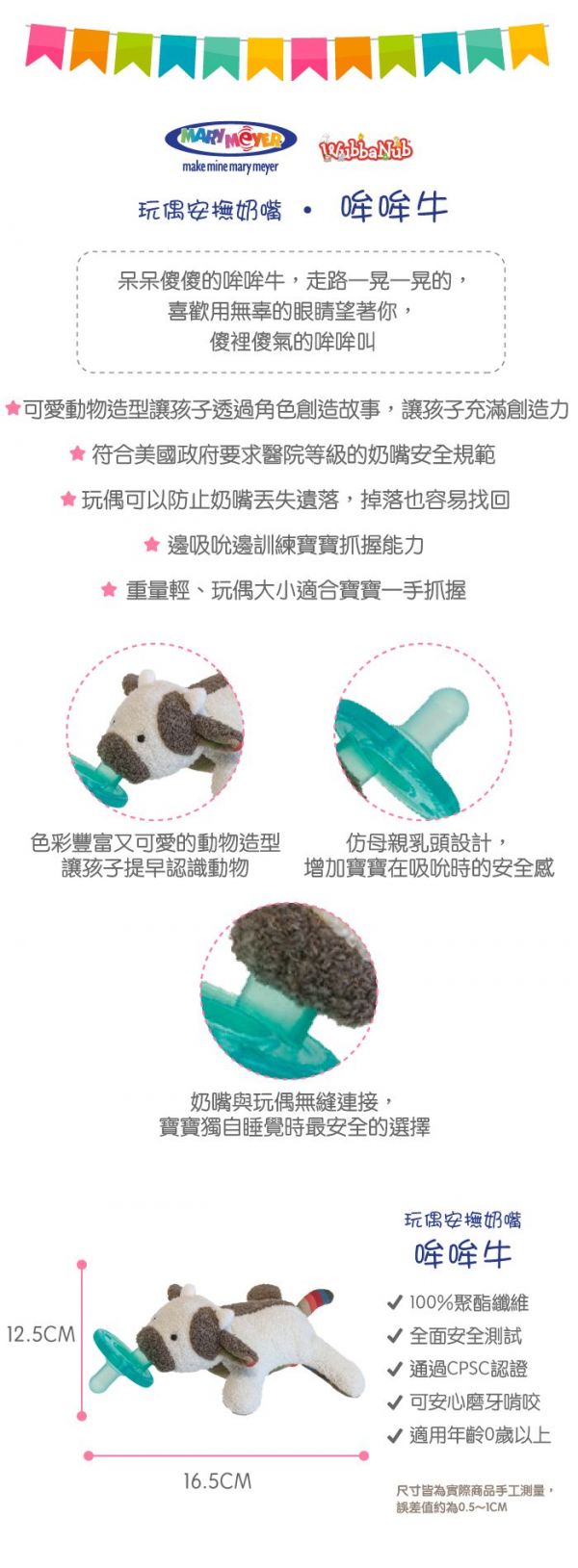- 毛絨玩偶使寶寶容易掌握和拿取奶嘴