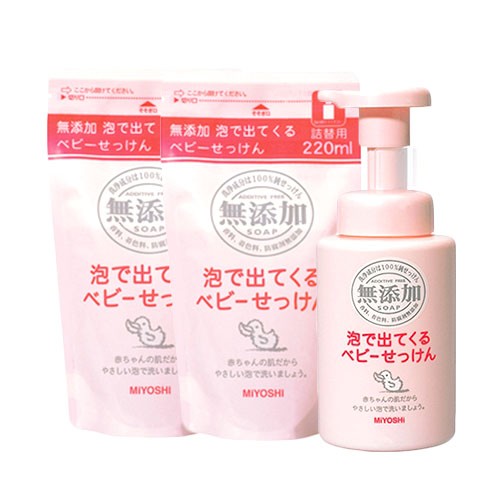 日本 MIYOSHI 無添加 嬰兒泡沫沐浴組(1瓶+2補充包)-250ml+220mlx2