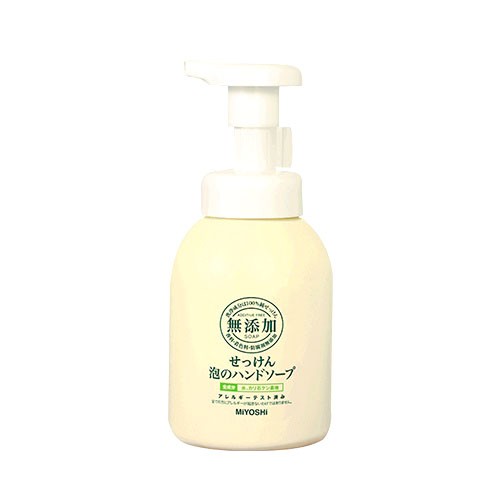 這款擠出來是濃密泡泡,皮膚敏感的人也可以輕鬆使用喔!一般大部分洗手乳需要沖洗一段時間才能沖掉滑滑的感覺,不過這款 MIYOSHI 無添加洗手乳有濃密泡泡,大概沖 5 秒就洗淨,方便又快速。