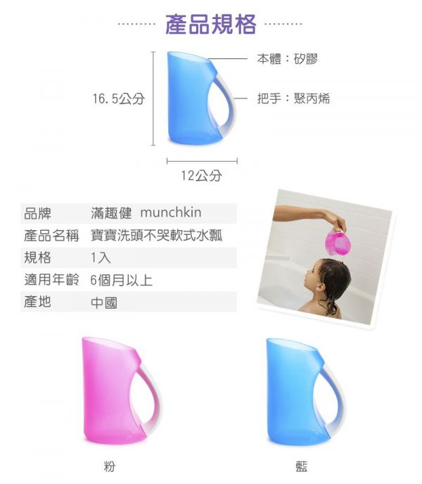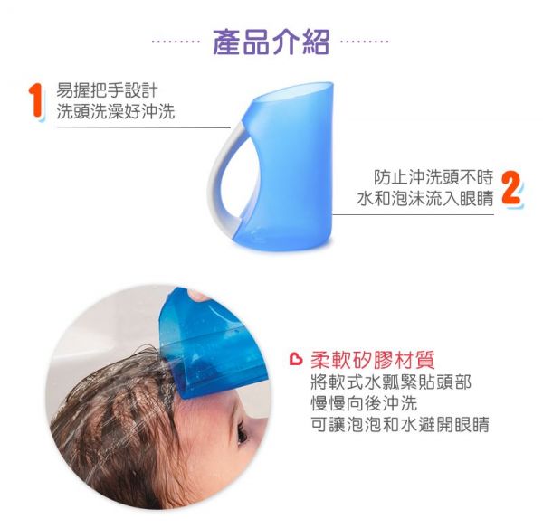 - 特殊設計,幫寶貝洗頭時可以防止水跑進眼睛